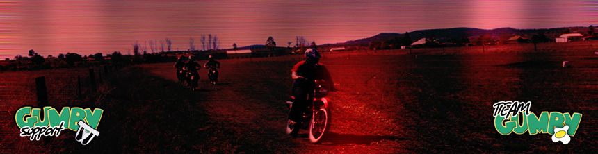 As stated on other pages, we are just basic in our riding skills. To qualify to be in Team Gumby you must enter a race within 12 months of application and attend regular events (that isn't many - remember... average riders!) that we here at Chookchasers organise. Also your ride has to be old. If you start, you will be known as an 'Initiate' until completion of requirements are met. The Team Gumby member requires dedication to the sport that we are most passionate about. There could be a sticker involved in this agreement?